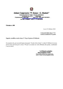 Circolare n. 200-cambio orario